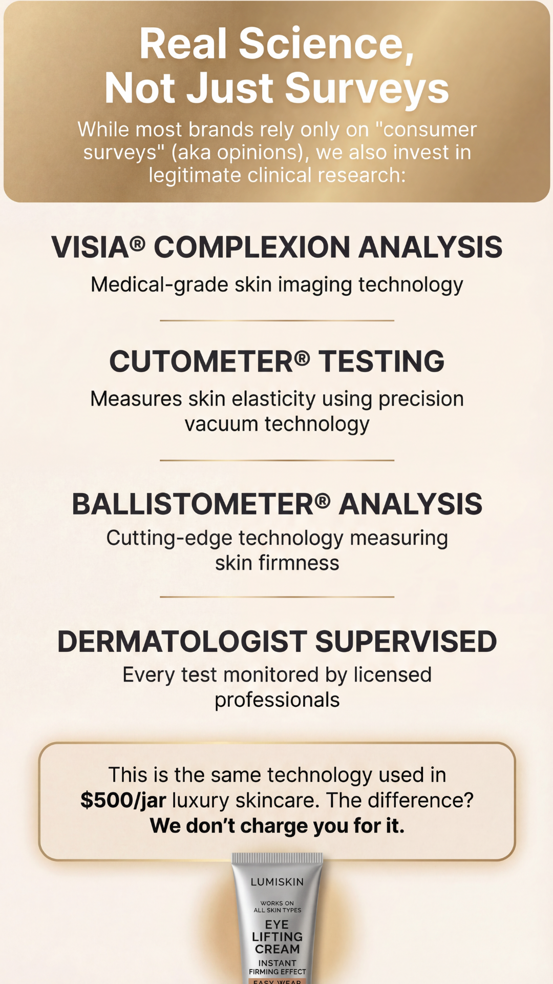 LumiSkin doesn't just mask — it treats. Our Diacetyl Boldine technology addresses hyperpigmentation at the cellular level while delivering flawless coverage. It's the first hybrid that does both. That's why we offer our Empty Jar Guarantee.