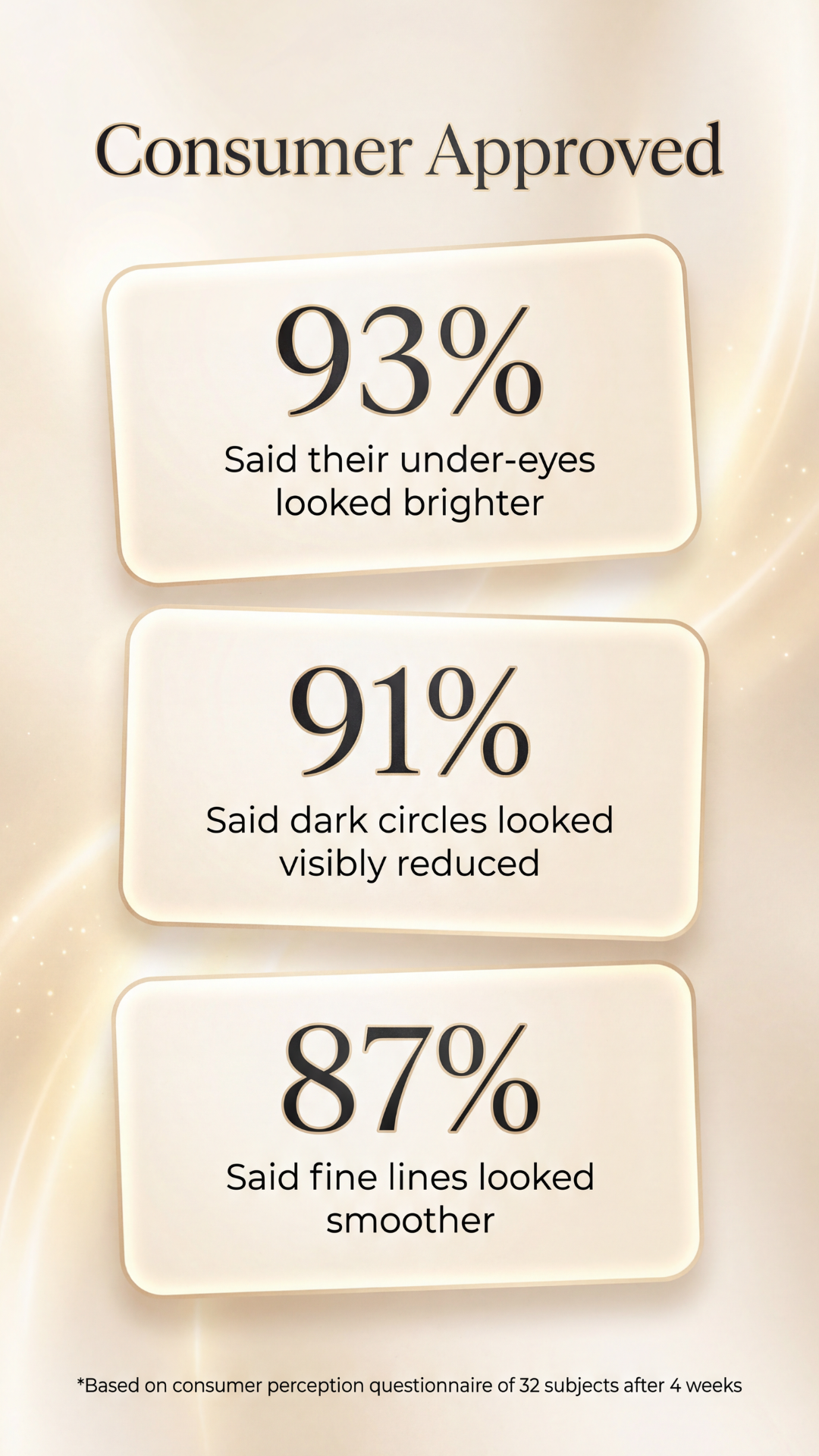 Caffeine Extract — Stimulates microcirculation for an instant tightening and de-puffing effect.