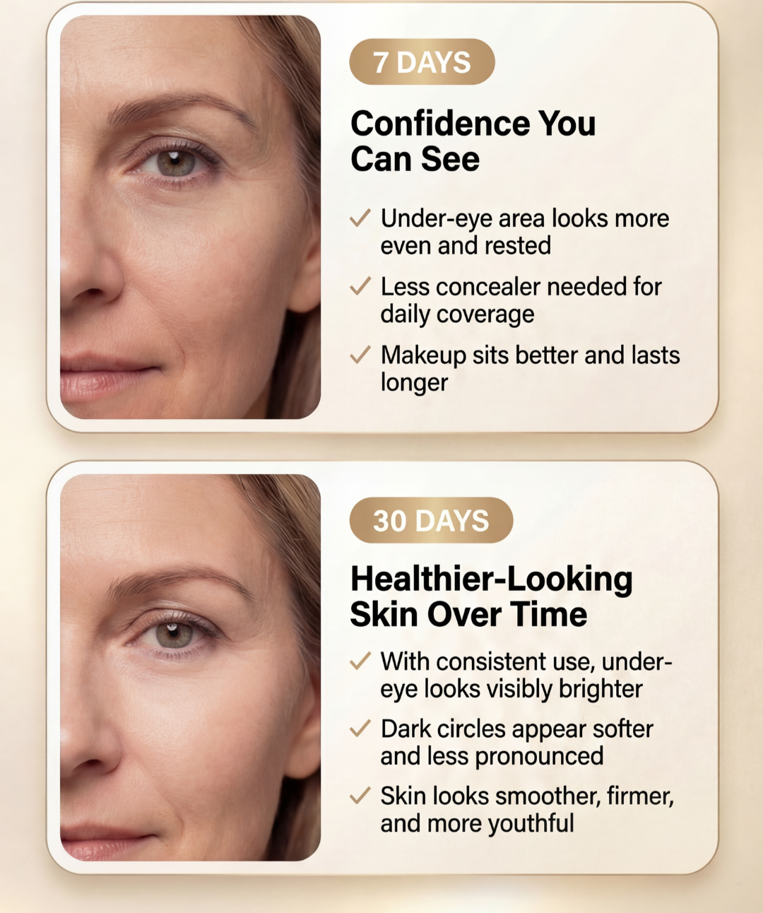 Immediate cosmetic improvement from the first application. For dark spot correction, most customers notice visible lightening within 4-6 weeks of daily use.